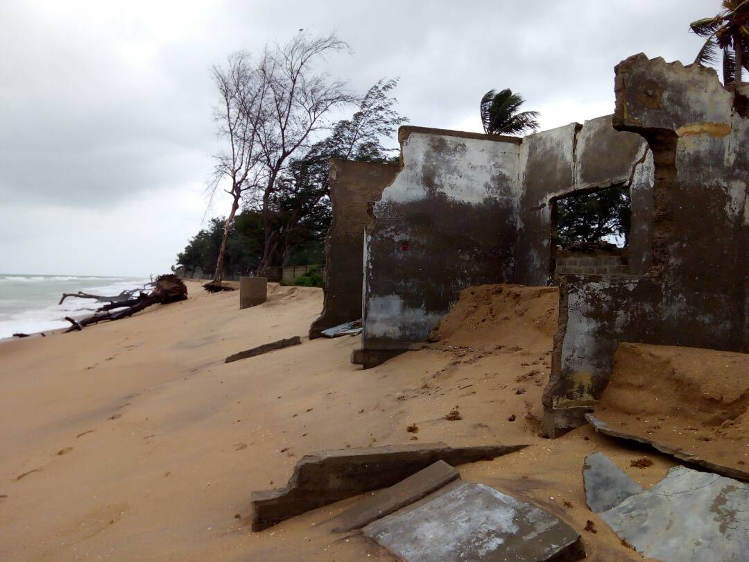 A Agoué, depuis trois ans, les riverains ont mis en place un dispositif de suivi de l’avancée de la mer. Suivant ce dispositif il ressort que la mer a englouti plus de 100 mètres des côtes.